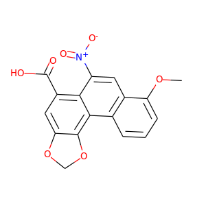 | synonyms | ['Aristolochic acid', 'Aristolochic acid A', '313-67-7', 'Aristolochic acid I', 'Aristolochin', 'Tardolyt', 'Aristolochic acid-I', 'ARISTOLOCHINE', 'TR 1736', 'NSC-50413', '8-Methoxy-3,4-methylenedioxy-10-nitrophenanthrene-1-carboxylic acid', '8-Methoxy-6-nitrophenanthro[3,4-d][1,3]dioxole-5-carboxylic acid', '3,4-Methylenedioxy-8-methoxy-10-nitro-1-phenanthrenecarboxylic acid', 'CHEBI:2825', '8-Methoxy-6-nitrophenanthol (3,4-d) 1,3-dioxole-5-carboxylic acid', '94218WFP5T', 'NSC-11926', 'TR-1736', '8-methoxy-6-nitronaphtho[2,1-g][1,3]benzodioxole-5-carboxylic acid', 'Phenanthro(3,4-d)-1,3-dioxole-5-carboxylic acid, 8-methoxy-6-nitro-', 'DTXSID0040969', 'Phenanthro[3,4-d]-1,3-dioxole-5-carboxylic acid, 8-methoxy-6-nitro-', '8-methoxy-6-nitrophenanthro(3,4-d)-1,3-dioxole-5-carboxylic acid', '8-methoxy-6-nitronaphtho(2,1-g)(1,3)benzodioxole-5-carboxylic acid', '8-methoxy-6-nitrophenanthro(3,4-d)(1,3)dioxole-5-carboxylic acid', 'RefChem:28223', 'DTXCID8020969', '206-238-3', '6-methoxy-9-nitro-14,16-dioxatetracyclo(8.7.0.02,7.013,17)heptadeca-1,3,5,7,9,11,13(17)-heptaene-11-carboxylic acid', 'NSC11926', 'MFCD00004996', 'Birthwort', 'ARISTOLOCHIA A', 'NSC50413', 'CHEMBL93353', 'MLS002702976', 'Aristolochic acid I;TR 1736', '2-Naphthyl Pyrovalerone-d8 Hydrochloride', '8-Methoxy-6-nitro-2H-phenanthro[3,4-d][1,3]dioxole-5-carboxylic acid', '8-methoxy-6-nitro-naphtho[2,1-g][1,3]benzodioxole-5-carboxylic acid', 'Aristolochiazaeure', '1246815-48-4', '8-methoxy-6-nitro-naphtho[1,2-e][1,3]benzodioxole-5-carboxylic acid', 'SMR001562128', 'Aristolochic acid 1', 'CCRIS 1544', 'SR-05000002369', 'EINECS 206-238-3', 'NSC 11926', 'NSC 50413', 'BRN 0345159', 'Aristolochia', 'Phenanthro[3,3-dioxole-5-carboxylic acid, 8-methoxy-6-nitro-', 'UNII-94218WFP5T', 'AristolochicacidA', 'Aristolochia HRS', 'aris-tolochic acid', '1-(Naphthalen-2-yl)-2-(pyrrolidin-1-yl-d8)pentan-1-one Hydrochloride; 1-(2-Naphthalenyl)-2-(1-pyrrolidinyl-d8)-1-pentanone-d8 Hydrochloride; Naphyrone-d8 Hydrochloride', 'GOQ', 'Aristolochic-acid-A', 'Spectrum_001156', 'SpecPlus_000448', '8-Methoxy-3,4-methylendioxxy-10-nitro-1-phenanthrencarbonsaeure', 'Aristolochic acid I CRS', 'Spectrum2_000822', 'Spectrum3_001114', 'Spectrum4_001952', 'Spectrum5_000729', '8-Methoxy-6-nitro-phenanthro[3,4-d]-1,3-dioxole-5-carboxylic acid', 'NCIMech_000812', 'Aristolochic acid I, 95%', 'Aristolochic acid I, powder', 'Epitope ID:2157311', 'BSPBio_001440', 'BSPBio_002848', 'KBioGR_000160', 'KBioGR_002387', 'KBioSS_000160', 'KBioSS_001636', 'MLS002695974', 'DivK1c_006544', 'SCHEMBL166284', 'SPECTRUM1502233', 'SPBio_000743', 'ARISTOLOCHIC ACID [MI]', 'Aristolochic acid A (Standard)', 'orb1305004', 'ARISTOLOCHIC ACID [IARC]', 'SCHEMBL29367530', 'SCHEMBL29518476', 'SCHEMBL30825061', 'GTPL12438', 'HY-N0510R', 'KBio1_001488', 'KBio2_000160', 'KBio2_001636', 'KBio2_002728', 'KBio2_004204', 'KBio2_005296', 'KBio2_006772', 'KBio3_000319', 'KBio3_000320', 'KBio3_002068', 'Bio1_000418', 'Bio1_000907', 'Bio1_001396', 'Bio2_000160', 'Bio2_000640', 'HMS1361H22', 'HMS1791H22', 'HMS1989H22', 'HMS3402H22', 'HMS5086I17', 'ARISTOLOCHIC ACID [WHO-DD]', 'HY-N0510', 'MSK40180', 'TNP00273', 'BDBM50306855', 'CCG-35796', 'CCG-36162', 'NSC787054', 's9193', 'Mixture of Aristolochic Acid A and B', 'AKOS015896751', 'EBC-616736', 'FA17982', 'NSC-787054', 'IDI1_033910', 'NCGC00017334-01', 'NCGC00017334-02', 'NCGC00017334-03', 'NCGC00017334-04', 'NCGC00017334-05', 'NCGC00017334-06', 'NCGC00017334-07', 'NCGC00017334-11', 'NCGC00095981-01', 'NCGC00095981-02', 'NCGC00095981-03', 'NCGC00095981-04', 'NCGC00095981-05', 'AC-34489', 'Aristolochic acid - Mixture of I and II', 'BS-16911', 'NCI60_000460', 'ST057179', 'SY074862', 'XA167153', 'DB-048017', 'CS-0009050', 'NS00003942', 'ST50307164', 'C08469', 'AA-504/21001015', 'ARISTOLOCHIC ACID, PLANTS CONTAINING [IARC]', 'SR-05000002369-2', 'SR-05000002369-3', 'Q21099362', 'Aristolochia, European Pharmacopoeia (EP) Reference Standard', '8-Methoxy-6-nitro-phenanthro[3,4-d][1,3]dioxole-5-carboxylic acid', 'Aristolochic acid I, European Pharmacopoeia (EP) Reference Standard', '8-methoxy-6-nitro-2H-phenanthro[3,4-d]1,3-dioxolene-5-carboxylic acid', '8-methoxy-6-nitro-2H-phenanthro[4,3-d]1,3-dioxolene-5-carboxylic acid', '8-Methoxy-6-nitrophenanthro[3,4-d][1,3]dioxole-5-carboxylic acid #', 'Phenanthro[3,4-d]-1,3-dioxole-5-carbocylic acid, 8-methoxy-6-nitro-'] |