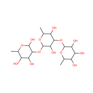| InChI | InChI=1S/C18H32O13/c1-4-8(20)11(23)15(16(26)27-4)31-18-13(25)14(9(21)6(3)29-18)30-17-12(24)10(22)7(19)5(2)28-17/h4-26H,1-3H3/t4-,5-,6-,7-,8-,9-,10+,11+,12+,13+,14+,15+,16+,17-,18-/m1/s1 |
