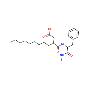 | synonyms | ['CHEMBL416510', 'BDBM50290432', '(R)-3-((S)-1-Methylcarbamoyl-2-phenyl-ethylcarbamoyl)-dodecanoic acid', '(R)-3-(((S)-1-(methylamino)-1-oxo-3-phenylpropan-2-yl)carbamoyl)dodecanoic acid'] |