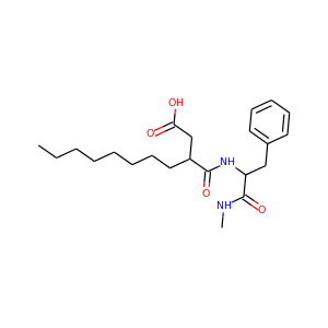 | synonyms | ['CHEMBL58235', 'BDBM50290437', '(R)-3-((S)-1-Methylcarbamoyl-2-phenyl-ethylcarbamoyl)-undecanoic acid', '(R)-3-(((S)-1-(methylamino)-1-oxo-3-phenylpropan-2-yl)carbamoyl)undecanoic acid'] |