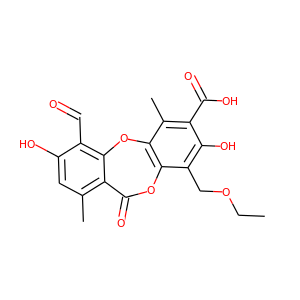 | IUPAC Name | 4-(ethoxymethyl)-10-formyl-3,9-dihydroxy-1,7-dimethyl-6-oxobenzo[b][1,4]benzodioxepine-2-carboxylic acid |