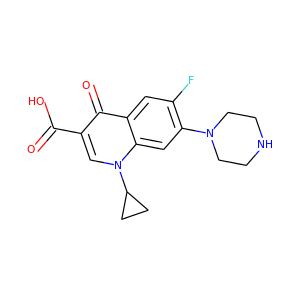 | synonyms | ['ciprofloxacin', '85721-33-1', 'Ciprofloxacine', 'Ciprobay', 'Cipro', 'Ciprofloxacina', 'Ciprofloxacino', 'Ciprofloxacinum', '1-Cyclopropyl-6-fluoro-1,4-dihydro-4-oxo-7-(1-piperazinyl)-3-quinolinecarboxylic acid', '1-cyclopropyl-6-fluoro-4-oxo-7-(piperazin-1-yl)-1,4-dihydroquinoline-3-carboxylic acid', 'Ciprocinol', 'Bacquinor', 'Cifloxin', 'Ciprodar', 'Otiprio', 'BAY q 3939', 'CPFX', 'BAYQ3939', '1-Cyclopropyl-6-fluoro-4-oxo-7-(1-piperazinyl)-1,4-dihydro-3-quinolinecarboxylic acid', '1-cyclopropyl-6-fluoro-4-oxo-7-piperazin-1-ylquinoline-3-carboxylic acid', '1-CYCLOPROPYL-6-FLUORO-4-OXO-7-PIPERAZIN-1-YL-1,4-DIHYDROQUINOLINE-3-CARBOXYLIC ACID', 'Velmonit', 'NSC-758467', '5E8K9I0O4U', 'CIPRO IN DEXTROSE 5% IN PLASTIC CONTAINER', 'BAY O 9867 FREE BASE', 'BAY-O-9867 FREE BASE', 'BAY-Q-3939', 'CIPRO IN SODIUM CHLORIDE 0.9% IN PLASTIC CONTAINER', '3-Quinolinecarboxylic acid, 1-cyclopropyl-6-fluoro-1,4-dihydro-4-oxo-7-(1-piperazinyl)-', 'Bay 09867', 'DTXSID8022824', 'CHEBI:100241', '3-Quinolinecarboxylic acid, 1,4-dihydro-1-cyclopropyl-6-fluoro-4-oxo-7-(1-piperazinyl)-', '1-Cyclopropyl-6-fluoro-4-oxo-7-piperazin-1-yl-1,4-dihydro-quinoline-3-carboxylic acid', '1-cyclopropyl-6-fluoro-7-hexahydro-1-pyrazinyl-4-oxo-1,4-dihydro-3-quinolinecarboxylic acid', '1-Cyclopropyl-6-fluoro-7-(4-methyl-piperazin-1-yl)-4-oxo-1,4-dihydro-quinoline-3-carboxylic acid', 'Ciprofloxacin In Dextrose 5%', 'RefChem:6412', 'Ciprofloxacin in Dextrose', 'ciprofloxacin by-compound a', 'Ciprofloxacin In Dextrose 5% In Plastic Container', 'Bay09867', 'ciprofloxacin desfluoro-compound', 'DTXCID002824', 'J01MA02', 'S01AE03', 'S02AA15', 'S03AA07', 'Ciprofloxacin Otic Solution, 0.2%', 'Anhydrous, Ciprofloxacin Hydrochloride', 'Hydrochloride Anhydrous, Ciprofloxacin', '617-751-0', '1-cyclopropyl-6-fluoro-4-oxo-7-piperazin-4-ium-1-ylquinoline-3-carboxylate', 'ciprofloxacin fluoroquinolonic acid', 'Ciproxan', 'Cipro IV', 'Ciproxina', 'Cipro XR', 'MFCD00185755', 'Ciproxin', 'Bay-09867', 'CHEMBL8', 'Cipromycin', 'Ciproquinol', 'Bernoflox', 'Septicide', '1-cyclopropyl-6-fluoro-4-oxo-7-piperazin-1-yl-quinoline-3-carboxylic acid', 'Ciprofloxacin monohydrochloride', 'Ciprecu', 'Ciprinol', 'Ciprogis', 'Ciprolin', 'Ciprolon', 'Ciprowin', 'Ciproxine', 'Citopcin', 'Corsacin', 'Fimoflox', 'Ipiflox', 'Italnik', 'Probiox', 'Proflaxin', 'Quinolid', 'Quintor', 'Roxytal', 'Spitacin', 'Superocin', 'Zumaflox', 'Baflox', 'Ciplus', 'Ciriax', 'Rancif', 'Cilab', 'Cixan', 'Cycin', 'Loxan', 'Unex', 'Sophixin Ofteno', 'Ciprobay Uro', 'Alcon Cilox', 'Bi-Cipro', 'Cipro (TN)', 'Ciprofloxacin Base', 'CPF', 'Proksi 250', 'Proksi 500', 'Cyprobay', 'Ciprofloxacin dihydrochloride', 'AuriPro', 'Eni', '1-cyclopropyl-6-fluoro-4-oxo-7-piperazinylhydroquinoline-3-carboxylic acid', '1-Cyclopropyl-6-fluoro-1,4-dihydro-4-oxo-7-(1-piperazinyl)-3-quinoline-carboxylic acid', 'BAY-o 9867', 'Ciprofloxacine [INN-French]', 'Ciprofloxacinum [INN-Latin]', '3-Quinolinecarboxylic acid, 1-cyclopropyl-6-fluoro-1,4-dihydro-4-oxo-7-(1-piperazinyl)-, hydrochloride', 'SMR000471901', 'Ciprofloxacino [INN-Spanish]', 'CCRIS 5241', 'HSDB 6987', 'SR-05000001863', 'NCGC00016959-01', 'CAS-93107-08-5', 'BRN 3568352', 'rubrum', 'UNII-5E8K9I0O4U', 'Ciprooxacin', 'Ciprine', 'Linhaliq', 'Ciprofloxacin RS', 'Ciprofloxacin CRS', 'Otiprio (TN)', 'Ciprofloxacin [USAN:USP:INN:BAN]', 'Ciprofloxacin (Cipro)', 'Spectrum_000162', 'Ciprofloxacin (Cipro)?', 'Ciprofloxacin protomer I', 'Ciprofloxacin (Standard)', 'Ciprofloxacin protomer II', 'Prestwick0_000113', 'Prestwick1_000113', 'Prestwick2_000113', 'Prestwick3_000113', 'Spectrum2_001567', 'Spectrum3_001872', 'Spectrum4_000874', 'Spectrum5_001089', 'Cipro (*Hydrochloride*)', 'CBMicro_048498', 'CIPROFLOXACIN [MI]', 'Ciloxan (*Hydrochloride*)', 'CIPROFLOXACIN [INN]', 'CIPROFLOXACIN [JAN]', 'SCHEMBL2900', 'CIPROFLOXACIN [HSDB]', 'CIPROFLOXACIN [USAN]', 'Oprea1_008239', 'Oprea1_313572', 'BSPBio_000126', 'BSPBio_003344', 'CIPROFLOXACIN [VANDF]', 'KBioGR_001567', 'KBioSS_000642', 'ANHYDROUS CIPROFLOXACIN', 'MLS001336035', 'MLS006011837', 'BIDD:GT0205', 'CIPROFLOXACIN [MART.]', 'DivK1c_000095', 'SPECTRUM1503614', 'SPBio_001474', 'SPBio_002065', 'CIPROFLOXACIN [USP-RS]', 'CIPROFLOXACIN [WHO-DD]', 'CIPROFLOXACIN [WHO-IP]', 'BPBio1_000140', 'orb1307927', 'orb3025773', 'BAY-O9867', 'BDBM21690', 'GTPL10902', 'HMS500E17', 'HY-B0356R', 'KBio1_000095', 'KBio2_000642', 'KBio2_003210', 'KBio2_005778', 'KBio3_002846', 'Linhaliq [Liposomal Formulation]', 'Ciprofloxacin (JP18/USP/INN)', 'MSK5703', 'NINDS_000095', 'Bay o 9867 (*Hydrochloride*)', 'HMS1922E18', 'HMS2090O07', 'HMS2093I03', 'HMS6019C09', 'Pharmakon1600-01503614', 'CIPROFLOXACIN [ORANGE BOOK]', 'ALBB-015909', 'FVB05035', 'HY-B0356', 'RKL10073', 'CIPROFLOXACIN [EP MONOGRAPH]', 'BBL005612', 'CCG-39345', 'CIPROFLOXACIN [USP MONOGRAPH]', 'CIPROFLOXACIN EXTENDED RELEASE', 'Ciprofloxacin, >=98.0% (HPLC)', 'EBC-12960', 'MSK5703-100M', 'NSC758467', 'NSC759028', 's2027', 'SBB012554', 'STK021082', '719 - Quinolone antibiotics in fish', 'AKOS000269653', 'CIPRODEX COMPONENT CIPROFLOXACIN', 'CIPROFLOXACINUM [WHO-IP LATIN]', 'MSK5703-1000M', 'AC-7613', 'AC58172', 'DB00537', 'KS-5006', 'NSC 758467', 'NSC-759028', 'IDI1_000095', 'SMP1_000125', 'Ciprofloxacin 100 microg/mL in Methanol', 'NCGC00016959-02', 'NCGC00016959-03', 'NCGC00016959-04', 'NCGC00016959-05', 'NCGC00016959-07', 'NCGC00095058-01', 'NCGC00095058-02', 'NCGC00178128-01', 'Ciprofloxacin; Enrofloxacin EP Impurity B', 'ST024751', 'SBI-0048462.P003', 'C2510', 'NS00008031', 'Ciprofloxacin Solution in Methanol, 100ug/mL', 'EN300-08481', 'C05349', 'Ciprofloxacin Solution in Methanol, 1000ug/mL', 'D00186', 'Ciprofloxacin, VETRANAL(TM), analytical standard', 'F358017', 'Q256602', 'SR-05000001863-1', 'SR-05000001863-3', 'BRD-K04804440-001-08-7', 'BRD-K04804440-001-09-5', 'BRD-K04804440-001-13-7', 'BRD-K04804440-311-02-3', 'Z56933707', 'Ciprofloxacin, European Pharmacopoeia (EP) Reference Standard', 'ENROFLOXACIN FOR VETERINARY USE IMPURITY B [EP IMPURITY]', 'Ciprof