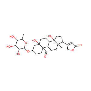 | IUPAC Name | (3S,5S,8R,9S,10S,13R,14S,17R)-5,14-dihydroxy-13-methyl-17-(5-oxo-2H-furan-3-yl)-3-[(2R,3R,4R,5R,6S)-3,4,5-trihydroxy-6-methyloxan-2-yl]oxy-2,3,4,6,7,8,9,11,12,15,16,17-dodecahydro-1H-cyclopenta[a]phenanthrene-10-carbaldehyde |