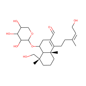 | IUPAC Name | 5-(hydroxymethyl)-1-[(E)-5-hydroxy-3-methylpent-3-enyl]-5,8a-dimethyl-4-(3,4,5-trihydroxyoxan-2-yl)oxy-3,4,4a,6,7,8-hexahydronaphthalene-2-carbaldehyde |