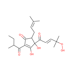 | IUPAC Name | (4S)-4-[(E)-4-hydroperoxy-4-methylpent-2-enoyl]-3,4-dihydroxy-2-(2-methylbutanoyl)-5-(3-methylbut-2-enyl)cyclopent-2-en-1-one |