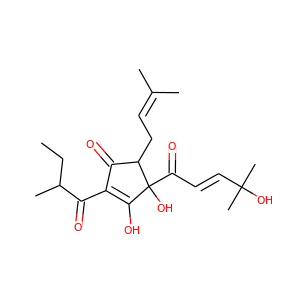 | IUPAC Name | (4S)-3,4-dihydroxy-4-[(E)-4-hydroxy-4-methylpent-2-enoyl]-2-(2-methylbutanoyl)-5-(3-methylbut-2-enyl)cyclopent-2-en-1-one |