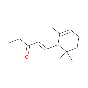 | synonyms | ['Methylionone', 'Ionone, methyl-', '1335-46-2', 'FEMA No. 2711', 'RefChem:555432', 'DTXSID0029214', '215-635-0', 'alpha-methyl ionone', 'Methyl ionone', 'alpha-Cetone', '1-(2,6,6-trimethylcyclohex-2-en-1-yl)pent-1-en-3-one', '(E)-1-(2,6,6-trimethylcyclohex-2-en-1-yl)pent-1-en-3-one', '1322-70-9', 'Methyl-alpha-ionone', '1-PENTEN-3-ONE, 1-(2,6,6-TRIMETHYL-2-CYCLOHEXEN-1-YL)-', '5-(2,6,6-Trimethyl-2-cyclohexenyl)-4-penten-3-one', 'alpha-Methylionone', '1-(2,6,6-Trimethyl-2-cyclohexene-1-yl)-1-penten-3-one', '(1E)-1-(2,6,6-trimethylcyclohex-2-en-1-yl)pent-1-en-3-one', '127-42-4', 'Cetone, alpha-', 'Methylionone, alpha-', '(e)-1-(2,6,6-trimethylcyclohex-2-enyl)pent-1-en-3-one', '(1E)-1-(2,6,6-Trimethyl-2-cyclohexen-1-yl)-1-penten-3-one', '1-Penten-3-one, 1-((1R)-2,6,6-trimethyl-2-cyclohexen-1-yl)-, (1E)-', 'EINECS 204-842-1', 'EINECS 215-635-0', 'EINECS 231-926-5', 'NSC 163996', 'Methyl-Ionone', 'Methyl ionone 3', 'N-Methyl-a-ionone', '1-Methyl-a-ionone', 'A-METHYLIONONE', '.alpha.-N-Methyl ionone', 'DSSTox_CID_6240', 'EC 215-635-0', 'DSSTox_RID_78712', 'DSSTox_GSID_29214', 'SCHEMBL132162', 'orb2939400', 'CHEMBL1371285', 'FEMA 2711', 'VPKMGDRERYMTJX-CMDGGOBGSA-', 'CHEBI:172145', 'DTXSID501197970', 'HAA77930', 'Tox21_201192', 'Tox21_301465', '(R-(E))-1-(2,6,6-Trimethyl-2-cyclohexen-1-yl)pent-1-en-3-one', '1-Penten-3-one, 1-(2,6,6-trimethyl-2-cyclohexen-1-yl)- (VAN)', 'NSC163996', '1-Penten-3-one, 1-(2,6,6-trimethyl-2-cyclohexen-1-yl)-, (theta-(E))-', 'HY-W355140', 'NSC-163996', '1-2,6,6-Trimethylcyclohex-2-en-1-yl', 'NCGC00091848-01', 'NCGC00091848-02', 'NCGC00091848-03', 'NCGC00255231-01', 'NCGC00258744-01', 'CAS-1335-46-2', 'CAS-7779-30-8', 'CS-0466424', 'NS00006735', 'D91324', 'Q3920656', '1-2,6,6-Trimethylcyclohex-2-en-1-yl;pent-1-en-3-one', '1-(2,2,6-Trimethylcyclohex-2-en-1-yl)-1-penten-3-one', '1-(2,6,6-Trimethylcyclohex-2-en-1-yl)-1-pentene-3-one', '1-Penten-3-one,6,6-trimethyl-2-cyclohexen-1-yl)- (VA', 'Methylionone (mixture of |A- and |A-, predominantly |A-n-isomer)', 'InChI=1/C14H22O/c1-5-12(15)8-9-13-11(2)7-6-10-14(13,3)4/h7-9,13H,5-6,10H2,1-4H3/b9-8+'] |
