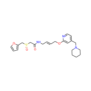 | IUPAC Name | 2-(furan-2-ylmethylsulfinyl)-N-[(Z)-4-[[4-(piperidin-1-ylmethyl)-2-pyridinyl]oxy]but-2-enyl]acetamide |