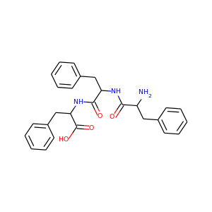 | synonyms | ['2578-81-6', 'Phe-phe-phe', 'Phenylalanyl-phenylalanyl-phenylalanine', 'L-Phenylalanine, N-(N-L-phenylalanyl-L-phenylalanyl)-', 'RefChem:173032', 'H-Phe-Phe-Phe-OH', 'l-phenylalanyl-l-phenylalanyl-l-phenylalanine', '(2S)-2-[[(2S)-2-[[(2S)-2-amino-3-phenylpropanoyl]amino]-3-phenylpropanoyl]amino]-3-phenylpropanoic acid', 'Tri-L-phenylalanine', 'MFCD00037261', 'L-Phe-L-Phe-L-Phe', 'L-Phe-L-Phe-L-Phe-OH', 'QW358DEW7W', 'CHEMBL420482', 'SCHEMBL8082492', 'DTXSID10948646', 'CHEBI:161777', 'phenylalanylphenylalanylphenylalanine', '(S)-2-((S)-2-((S)-2-Amino-3-phenylPropanamido)-3-phenylPropanamido)-3-phenylPropanoic acid', 'HY-P4479', 'DA-64251', 'FP109294', 'L-Phenylalanine, L-phenylalanyl-L-phenylalanyl-', 'Alanine, 3-phenyl-N-[3-phenyl-N-(3-phenyl-L-alanyl)-L-alanyl]-'] |