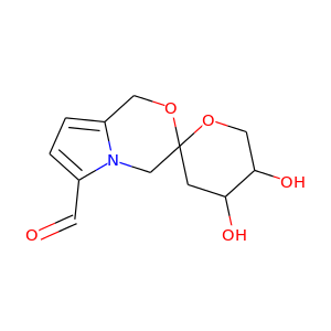 | IUPAC Name | (3R,4'S,5'R)-4',5'-dihydroxyspiro[1,4-dihydropyrrolo[2,1-c][1,4]oxazine-3,2'-oxane]-6-carbaldehyde |
