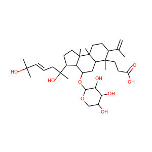 | InChI | InChI=1S/C35H58O9/c1-20(2)21-10-16-33(6)25(32(21,5)15-12-26(37)38)18-24(44-30-29(40)28(39)23(36)19-43-30)27-22(11-17-34(27,33)7)35(8,42)14-9-13-31(3,4)41/h9,13,21-25,27-30,36,39-42H,1,10-12,14-19H2,2-8H3,(H,37,38)/b13-9+ |