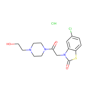 | IUPAC Name | 5-chloro-3-[2-[4-(2-hydroxyethyl)piperazin-1-yl]-2-oxoethyl]-1,3-benzothiazol-2-one;hydrochloride |