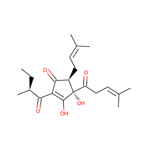 IUPAC Name (4R,5R)-3,4-dihydroxy-2-(2-methylbutanoyl)-5-(3-methylbut-2-enyl)-4-(4-methylpent-3-enoyl)cyclopent-2-en-1-one