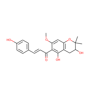 | InChI | InChI=1S/C21H22O6/c1-21(2)18(24)10-14-16(27-21)11-17(26-3)19(20(14)25)15(23)9-6-12-4-7-13(22)8-5-12/h4-9,11,18,22,24-25H,10H2,1-3H3/b9-6+ |