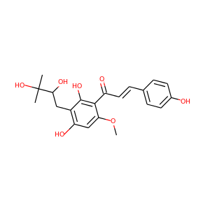 | IUPAC Name | (E)-1-[3-(2,3-dihydroxy-3-methylbutyl)-2,4-dihydroxy-6-methoxyphenyl]-3-(4-hydroxyphenyl)prop-2-en-1-one |