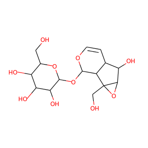 | InChI | InChI=1S/C15H22O10/c16-3-6-9(19)10(20)11(21)14(23-6)24-13-7-5(1-2-22-13)8(18)12-15(7,4-17)25-12/h1-2,5-14,16-21H,3-4H2/t5-,6-,7-,8+,9-,10+,11-,12+,13+,14+,15-/m1/s1 |