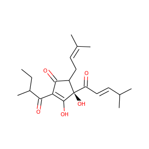 | IUPAC Name | (4R)-3,4-dihydroxy-2-(2-methylbutanoyl)-5-(3-methylbut-2-enyl)-4-[(E)-4-methylpent-2-enoyl]cyclopent-2-en-1-one |