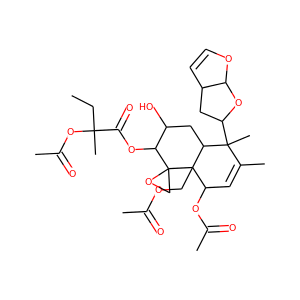 | InChI | InChI=1S/C31H42O12/c1-8-28(6,43-19(5)34)27(36)42-25-21(35)13-22-29(7,23-12-20-9-10-37-26(20)41-23)16(2)11-24(40-18(4)33)30(22,14-38-17(3)32)31(25)15-39-31/h9-11,20-26,35H,8,12-15H2,1-7H3/t20-,21-,22-,23+,24+,25+,26+,28-,29+,30+,31-/m1/s1 |