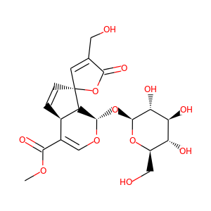 | IUPAC Name | methyl (1S,4aS,7R,7aS)-4'-(hydroxymethyl)-5'-oxo-1-[(2S,3R,4S,5S,6R)-3,4,5-trihydroxy-6-(hydroxymethyl)oxan-2-yl]oxyspiro[4a,7a-dihydro-1H-cyclopenta[c]pyran-7,2'-furan]-4-carboxylate |