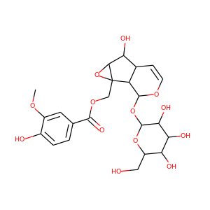| InChI | InChI=1S/C23H28O13/c1-31-12-6-9(2-3-11(12)25)20(30)33-8-23-14-10(15(26)19(23)36-23)4-5-32-21(14)35-22-18(29)17(28)16(27)13(7-24)34-22/h2-6,10,13-19,21-22,24-29H,7-8H2,1H3/t10-,13-,14-,15+,16-,17+,18-,19+,21+,22-,23-/m1/s1 |