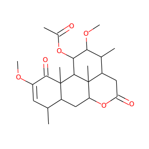 | synonyms | ['Nigakilactone C', 'Nigakilactone', '24148-78-5', '[(1S,2S,6S,7S,9R,13S,14R,15S,16S,17S)-4,15-dimethoxy-2,6,14,17-tetramethyl-3,11-dioxo-10-oxatetracyclo[7.7.1.02,7.013,17]heptadec-4-en-16-yl] acetate', 'Nigakilacton C', 'QBP9GW28WH', 'SCHEMBL29382455', 'CHEBI:80871', 'DTXSID40946978', '11alpha-Acetoxy-2,12beta-Dimethoxypicras-2-Ene-1,16-Dione', 'C17029', 'Q27151368', '2,12-Dimethoxy-1,16-dioxopicras-2-en-11-yl acetate', '2,12beta-Dimethoxy-1,16-dioxopicras-2-en-11alpha-yl acetate', 'Picras-2-ene-1,16-dione, 11-(acetyloxy)-2,12-dimethoxy-, (11alpha,12beta)-', 'Phenanthro[10,1-bc]pyran-5,11(1H,4H)-dione, 2,3,3abeta,6abeta,7,7aalpha,8,11a,11balpha,11c-decahydro-1alpha-hydroxy-2beta,10-dimethoxy-3alpha,8alpha,11abeta,11cbeta-tetramethyl-, acetate'] |