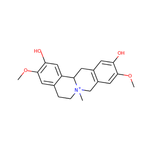| synonyms | ['Phellodendrine', '6873-13-8', 'Phallodendrin', '(-)-Phellodendrine', 'AR68S526RB', '(7S,13aS)-3,10-dimethoxy-7-methyl-6,8,13,13a-tetrahydro-5H-isoquinolino[2,1-b]isoquinolin-7-ium-2,11-diol', 'DTXSID50218855', 'pellodendrine', '(7S,13aS)-3,10-dimethoxy-7-methyl-6,8,13,13a-tetrahydro-5H-isoquinolino(2,1-b)isoquinolin-7-ium-2,11-diol', 'RefChem:172564', 'DTXCID00141346', 'OB-5 Compound', 'UNII-AR68S526RB', '6H-Dibenzo(a,g)quinolizinium, 5,8,13,13a-tetrahydro-2,11-dihydroxy-3,10-dimethoxy-7-methyl-, (7S-cis)-', 'N-Methylcoreximine', 'SCHEMBL309711', 'orb1300237', 'SCHEMBL29381829', 'CHEBI:80886', 'MSK1625', 'HY-N0427', 'AKOS030573404', 'FP73850', 'CS-0008950', 'C17046', 'PhellodendrineDISCONTINUED. Please see P294565', 'Q7181238', '(7S,13aS)-2,11-Dihydroxy-3,10-dimethoxy-7-methyl-5,8,13,13a-tetrahydro-6H-isoquinolino[3,2-a]isoquinolin-7-ium', '(7S,13aS)-5,8,13,13a-Tetrahydro-2,11-dihydroxy-3,10-dimethoxy-7-methyl-6H-dibenzo[a,g]quinolizinium', '6H-Dibenzo[a,g]quinolizinium, 5,8,13,13a-tetrahydro-2,11-dihydroxy-3,10-dimethoxy-7-methyl-, (7S,13aS)-'] |