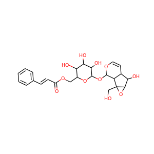 | InChI | InChI=1S/C24H28O11/c25-11-24-16-13(17(27)21(24)35-24)8-9-31-22(16)34-23-20(30)19(29)18(28)14(33-23)10-32-15(26)7-6-12-4-2-1-3-5-12/h1-9,13-14,16-23,25,27-30H,10-11H2/b7-6+/t13-,14-,16-,17+,18-,19+,20-,21+,22+,23+,24-/m1/s1 |