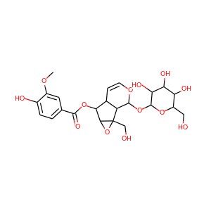 | IUPAC Name | [(1S,2S,4S,5S,6R,10S)-2-(hydroxymethyl)-10-[(2S,3R,4S,5S,6R)-3,4,5-trihydroxy-6-(hydroxymethyl)oxan-2-yl]oxy-3,9-dioxatricyclo[4.4.0.02,4]dec-7-en-5-yl] 4-hydroxy-3-methoxybenzoate |
