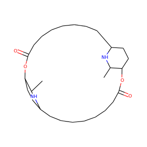 | InChI | InChI=1S/C28H50N2O4/c1-21-25-19-17-23(29-21)13-9-5-3-8-12-16-28(32)34-26-20-18-24(30-22(26)2)14-10-6-4-7-11-15-27(31)33-25/h21-26,29-30H,3-20H2,1-2H3/t21-,22+,23-,24-,25+,26+/m1/s1 |