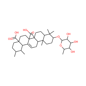 | IUPAC Name | (1S,2R,4aS,6aR,6aR,6bR,8aR,10S,12aR,14bS)-1,2,6b,9,9,12a-hexamethyl-10-[(2R,3R,4S,5S,6R)-3,4,5-trihydroxy-6-methyloxan-2-yl]oxy-2,3,4,5,6,6a,7,8,8a,10,11,12,13,14b-tetradecahydro-1H-picene-4a,6a-dicarboxylic acid |