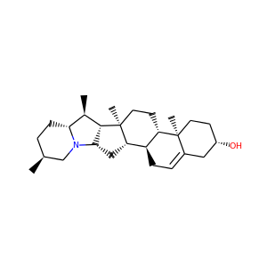 synonyms ['Solanidine', '80-78-4', 'Solatubine', 'Solanidin', 'Solatubin', 'Solanid-5-en-3beta-ol', '3-beta-Solanid-5-en-3-ol', 'Solanid-5-en-3-beta-ol', 'Solanid-5-en-3-ol, (3beta)-', 'W7801OHM8B', 'DTXSID701018960', 'NSC-76025', '(1S,2S,7S,10R,11S,14S,15R,16S,17R,20S,23S)-10,14,16,20-tetramethyl-22-azahexacyclo[12.10.0.02,11.05,10.015,23.017,22]tetracos-4-en-7-ol', '(3beta)-solanid-5-en-3-ol', 'CHEBI:28374', '(1S,2S,7S,10R,11S,14S,15R,16S,17R,20S,23S)-10,14,16,20-tetramethyl-22-azahexacyclo(12.10.0.02,11.05,10.015,23.017,22)tetracos-4-en-7-ol', 'RefChem:184205', 'DTXCID801476971', '201-309-5', '22R,25S-Solanidanine', '22R,25S-Solanidine', 'Solanid-5-en-3-ol, (3.beta.)-', 'NSC76025', 'MFCD00056839', 'NSC 76025', 'Solanid-5-en-3.beta.-ol', 'Solanid-5-en-3-ol', 'CCRIS 6508', 'EINECS 201-309-5', 'BRN 0045370', 'UNII-W7801OHM8B', 'C27H43NO', 'Solanid-5-en-3-ol, (3-beta)-', 'Solanid-5-en-3b-ol', 'SOLANIDINE [MI]', '4-21-00-01398 (Beilstein Handbook Reference)', 'SCHEMBL336752', 'orb1708483', 'Solanid-5-en-3beta-ol(8CI)', 'CHEMBL1980466', 'GTPL12500', '3-b-Solanid-5-en-3-ol(9cl)', '3-beta-Solanid-5-en-3-ol(9cl)', 'HY-N7271', 'Solanidine, >=97.0% (HPLC)', 'LMST01150007', 'AKOS040738795', 'EBC-618091', 'FS76516', 'solanid-5-en-3-ol (ACD/Name 4.0)', 'DA-67683', 'MS-26717', 'NCI60_041673', 'CS-0111098', 'C06543', 'G12145', 'Q3489153', '(1S,2S,7S,10R,11S,14S,15R,16S,17R,20S,23S)-10,14,16,20-tetramethyl-22-azahexacyclo[12.10.0.0^{2,11}.0^{5,10}.0^{15,23}.0^{17,22}]tetracos-4-en-7-ol']