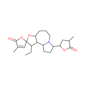 | synonyms | ['Stemonine', "3-ethyl-3'-methyl-11-(4-methyl-5-oxooxolan-2-yl)spiro[5-oxa-10-azatricyclo[8.3.0.02,6]tridecane-4,5'-furan]-2'-one", "3-ethyl-3'-methyl-11-(4-methyl-5-oxooxolan-2-yl)spiro(5-oxa-10-azatricyclo(8.3.0.02,6)tridecane-4,5'-furan)-2'-one", 'RefChem:185518', '27498-90-4', '69772-72-1', 'SCHEMBL29400573', 'DTXSID50989952', "1'-Ethyl-4-methyl-8'-(4-methyl-5-oxooxolan-2-yl)-1',3'a,4',5',6',8',9',10',10'a,10'b-decahydro-5H-spiro[furan-2,2'-furo[3,2-c]pyrrolo[1,2-a]azepin]-5-one", "Spiro(furan-2(5H),2'-(2H)-furo(3,2-c)pyrrolo(1,2-a)azepin)-5-one, 1'-ethyl-1',3'a,4',5',6',8',9',10',10'a,10'b-decahydro-4-methyl-8'-(tetrahydro-4-methyl-5-oxo-2-furanyl)-"] |