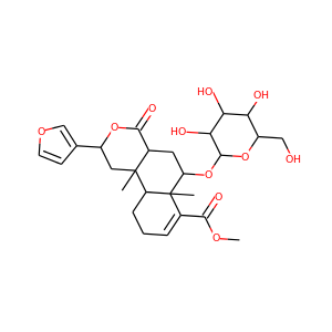 | InChI | InChI=1S/C27H36O11/c1-26-10-16(13-7-8-35-12-13)36-24(33)15(26)9-19(27(2)14(23(32)34-3)5-4-6-18(26)27)38-25-22(31)21(30)20(29)17(11-28)37-25/h5,7-8,12,15-22,25,28-31H,4,6,9-11H2,1-3H3/t15-,16-,17+,18-,19+,20+,21-,22+,25-,26+,27-/m0/s1 |