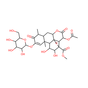 | synonyms | ['Yadanzioside F', '95258-11-0', 'RefChem:934390', 'methyl (1R,2S,3R,6R,8S,9S,13S,14R,15R,16S,17R)-3-acetyloxy-15,16-dihydroxy-9,13-dimethyl-4,10-dioxo-11-((2S,3R,4S,5S,6R)-3,4,5-trihydroxy-6-(hydroxymethyl)oxan-2-yl)oxy-5,18-dioxapentacyclo(12.5.0.01,6.02,17.08,13)nonadec-11-ene-17-carboxylate', 'CHEMBL509907', 'SCHEMBL29771409'] |